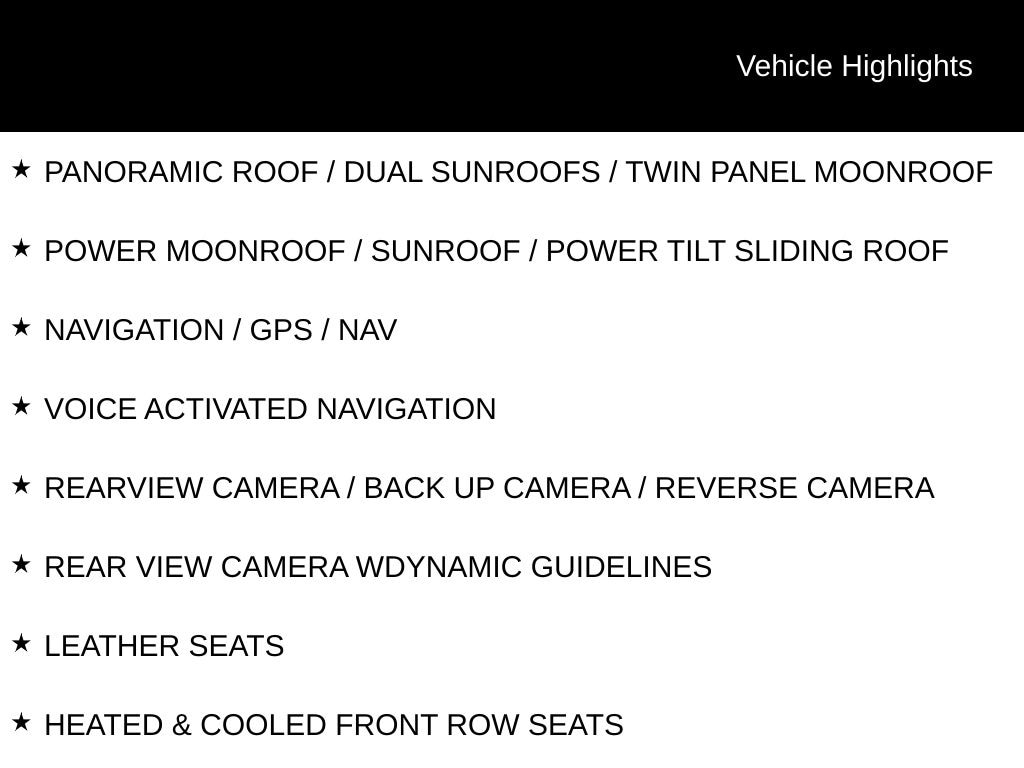 - PANORAMIC ROOF / DUAL SUNROOFS / TWIN PANEL MOONROOF
